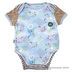 Боди прямого силуэта с округлым вырезом горловины и коротким рукавом. Классическая боди-застежка на кнопки в пройме. Изделие украшено принтами и аппликациями.