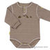 Боди прямого силуэта с округлым вырезом горловины и длинным рукавом. Застежка на кнопки на полочке и классическая боди-застежка на кнопки в пройме. Полочка декорирована аппликацией. Контрастная прострочка
