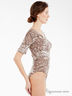 Боди прилегающего силуэта, рукав до локтя, вырез декольте.