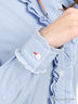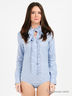 Оригинальная рубашка-боди с длинными рукавами на манжетах с пуговицами. Прямой силуэт. Застегивается на пуговицы. Отложной воротник стойка с застежкой на пуговицы и завязкой на ленту. Полочка украшена многослойными рюшами. Снизу классическая боди-застежка на кнопки. Сбоку вышивка. Прекрасно подойдет как для классических брюк, так и для повседневной юбки!