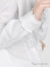 Стильное боди прямого силуэта с отложным воротом со съемной завязкой и длинным рукавом. Манжеты с оборками на пуговице, застежка на пуговицы. Планка декорирована оборками. Рельефные вытачки. Классическая боди-застежка на кнопки. Идеально подойдет для деловых встреч.
