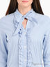 Оригинальная рубашка-боди с длинными рукавами на манжетах с пуговицами. Прямой силуэт. Застегивается на пуговицы. Отложной воротник стойка с застежкой на пуговицы и завязкой на ленту. Полочка украшена многослойными рюшами. Снизу классическая боди-застежка на кнопки. Сбоку вышивка. Прекрасно подойдет как для классических брюк, так и для повседневной юбки!