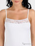 Детали: тонкие лямки, передняя часть декорирована кружевной вставкой, застежка на крючки в пройме