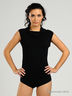Стильное боди из тонкой трикотажной ткани без застежек прекрасно дополнит любой гардероб. Ворот-хомут. Проймы дополнены трикотажной лентой. Ластовица дополнена хлопковой тканью.