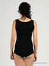 Стильное боди из тонкой трикотажной ткани без застежек прекрасно дополнит любой гардероб. V-образный вырез горловины и проймы дополнены трикотажной лентой. Ластовица дополнена хлопковой тканью. Боди декорировано треугольной вставкой из трикотажной ткани.