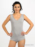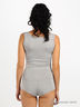 Стильное боди из тонкой трикотажной ткани без застежек прекрасно дополнит любой гардероб. V-образный вырез горловины и проймы дополнены трикотажной лентой. Ластовица дополнена хлопковой тканью. Боди декорировано треугольной вставкой из трикотажной ткани.