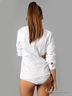 Детали: Боди с длинными рукавами, и сорочечным воротником, застежка на пуговицах, рукав длинный посажен на широкую манжету с застежкой на пуговицах.