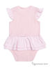 Замечательное боди с короткими рукавами и округлым вырезом горловины. Модель дополнена застежкой на кнопки, а так же декоративной юбкой в виде воланов. Отличный вариант для гардероба маленькой принцессы.