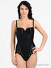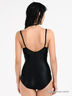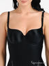 Оригинальное боди на косточках из тонкой шелковистой ткани с поролоновыми чашками. Несъемные эластичные бретели регулируются по длине. Ластовица на подкладке, классическая боди-застежка на крючки. Декорировано кружевными вставками.