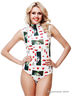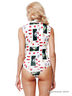 Стильное боди c воротником-стойкой, без рукавов. Яркий, интересный принт. Модель хорошо садиться по фигуре.