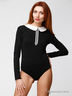 Оригинальное боди с отложным воротником и стилизованным декорированным галстуком. Сзади V-образный вырез с воротником. Длинные рукава. Стильная и удобная модель, которая подчеркнет индивидуальность и великолепный вкус своей обладательницы!