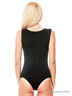 Стильное боди с вырезом горловины «лодочка», без рукавов. Оформлено декором в виде перетяжки другого цвета на предплечье.