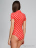 Комфортное, облегающее боди с принтом "горошек". Изделие с коротким рукавом и, c воротником-стойкой. Модель обеспечивает максимальный комфорт и удобство.