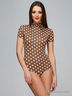 Комфортное, облегающее боди с принтом "горошек". Изделие с коротким рукавом и, c воротником-стойкой. Модель обеспечивает максимальный комфорт и удобство.