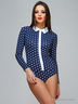 Эффектное боди прилегающего силуэта с длинным рукавом. Изделие с отложным, контрастного цвета воротником, и застежкой на пуговицы. Создавайте свой стиль с помощью этого замечательного наряда!