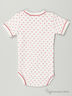 Детали: округлый вырез горловины, короткий рукав, застежка на две кнопки налевом плечике, классическая боди-застежка на кнопки в пройме, полочка декорирована принтом