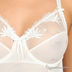 Боди из плотной утягивающей трикотажной ткани. Спереди вставка из тонкой микросетки с вышивкой. Мягкие чашки с горизонтальным швом, на косточках. Широкие регулируемые бретели.