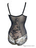 Корректирующее кружевное боди с чашкой балконет пуш-ап на поролоне. Лиф балконет на косточках со съемными бретелями. Чашка дублирована тонким поролоном, хлопком к телу. Чашка изнутри снабжена кармашком с поролоновой подушкой для придания эффекта push-up. Застежка на крючки снизу. Боди обеспечивает высокую степень утяжки в области живота, талии. Бесшовные края трусиков деликатно облегают ягодицы, оставляя незаметными под одеждой.