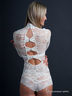 Гипюровое боди с длинными рукавами и воротником стойка, на спине оригинальные бантики. Модель идеально облегает фигуру, подтягивая ее. Изделие выполнено из качественного материала. Лаконичная расцветка порадует глаз.
