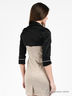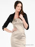 Искусное болеро прямого силуэта. Выполнено из гладкой атласной ткани с шелковистой подкладкой. Оригинальный воротник "апаш". Укороченные рукава 3/4 украшены тесьмой с серебристой цепочкой. Без застежки. Прекрасное дополнение к вечернему платью!