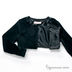 Классическое болеро с длинным рукавом выполнено из велюра с тонкой шелковистой подкладкой. Застегивается на один крючок у выреза горловины. Горловина декорирована рюшей из атласной ленты.