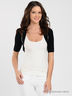 Болеро из мягкого трикотажа с коротким рукавом идеально дополнит Ваш образ. Изделие декорировано стразами.