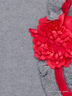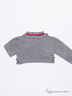 Замечательное болеро для девочки. Модель укороченная с длинными рукавами. Края оформлены в рубчик. Декорировано ярким цветком и рюшами.