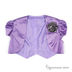 Нарядное атласное болеро нежного сиреневого цвета. Короткие сосборенные рукава. Фигурная спинка. На полочке стильный цветок, украшенный пайетками.
