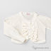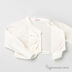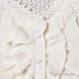 Модель свободного кроя застегивается на пуговицы по всей длине изделия. Ажурное болеро украшено тесьмой по низу изделия. Манжеты - трикотажные резинки. Оформление планки-застежки из трикотажа.