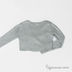 Трикотажная модель с V-образным вырезом, отворотами и перламутровыми пуговицами.
