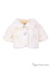 Очаровательное болеро из искусственного меха, флисовая подкладка. Изделие украшено множеством декоративных элементов. Модель дополнена застежкой на большие блестящие пуговицы. Отличный вариант для создания праздничного образа маленькой принцессы.