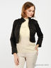 Модное болеро из гладкого эластичного материала. Воротник стойка, плечи с погонами, линия горловины декорирована бисером, стильные крупные пуговицы придают модели особое очарование и шик. Отличный вариант для прогулок, встреч, свиданий!