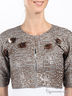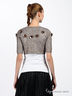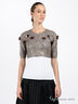 Нарядное болеро прямого кроя из тонкой трикотажной ткани, расшитое россыпью матовых пайеток и бусин. Застегивается на крючки. Короткий прямой рукав.