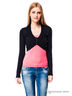 Это облегающее фигуру болеро можно носить с футболкой или платьем, а можно использовать и как самостоятельный предмет гардероба, так как оно достаточно закрыто. Украшением служат маленькие пуговицы посредине лифа, а так же отделанная кантом горловина. Узкие длинные рукава прекрасно дополняют это изделие.