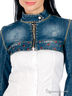 Детали: воротник-стойка на кнопке, длинные рукава на молнии, застегивается на металлическую молнию, украшено крупными красными стразами