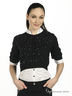 Детали: округлый вырез горловины, застежка на пуговицы, полочки украшены металлическими элементами