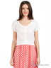 Детали: округлый вырез горловины, короткий рукав-реглан, застежка на пуговицы, декоративная перфорация