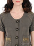 Детали: округлый вырез горловины, короткие рукава, застежка на пуговицы, спереди два накладных кармана, изделие декорировано стразами и металлическими элементами