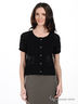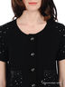 Детали: округлый вырез горловины, короткие рукава, застежка на пуговицы, спереди два накладных кармана, изделие декорировано стразами и металлическими элементами