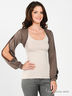 Детали: длинный рукав с прорезью присборен на манжету, округлый крой низа изделия