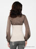 Детали: длинный рукав с прорезью присборен на манжету, округлый крой низа изделия