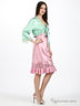 Детали: завязки в бант под грудью, широкий рукав и полочка декорированы гипюровым кружевом