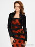 Оригинальное болеро из плотной атласной ткани. Длинные прямые рукава. Полочка декорирована рюшами из тонкой ткани и оригинальными цветами. Станет прекрасным дополнением к праздничному образу!