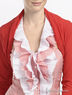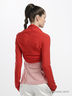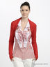 Яркое болеро с округлым кроем низа из тонкой трикотажной ткани. Ворот, переходящий в планку собран на резинку в области шеи. Длинный прямой рукав. Края изделия обработаны оверлоком.