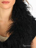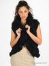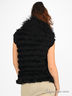 Удлиненное вязаное болеро с мохнатым отложным воротником и короткими рукавами декорировано продетыми вставками из кроличьего меха.
