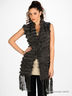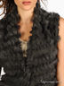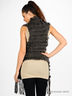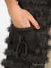 Удлиненное вязаное болеро оригинального фасона декорировано продетыми вставками из кроличьего меха.. Два передних кармана украшены бантиками.