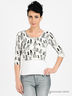 Детали: круглый вырез; застегивается на пуговицы; рукав 3/4; высокие манжеты и низ изделия в виде трикотажной резинки; оригинальный принт