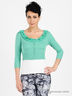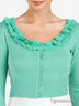 Детали: круглый вырез окантован оригинальными нашивками; застегивается на пуговицы; рукав 3/4; манжеты и низ изделия в виде трикотажной резинки