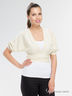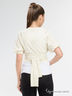 Трикотажное, однотонное болеро с широким втачным поясом, по низу переходящий в длинные ленты-завязки. Рукава средней длины, покроя "летучая мышь". Низ рукавов и край горловины окантованы резинкой. Отличный вариант для создания модного образа.