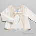 Болеро прямого кроя с длинным рукавом. Края украшены тесьмой и кружевом. Завязка атласной лентой.